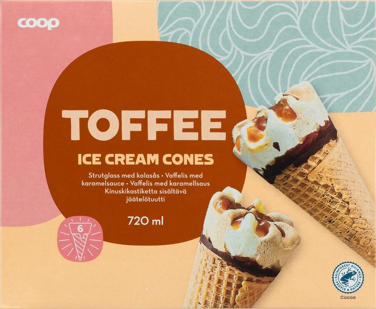 Coop jäätelötuutti toffee 6 kpl 414 g