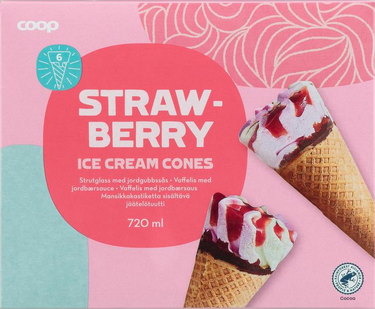 Coop jäätelötuutti mansikka 6 kpl 414 g